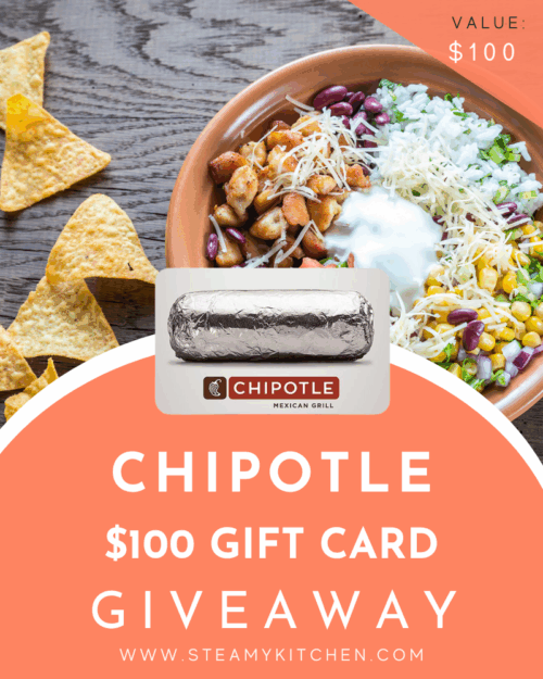Enter below for your chance to win the $100 Chipotle Gift Card Giveaway!